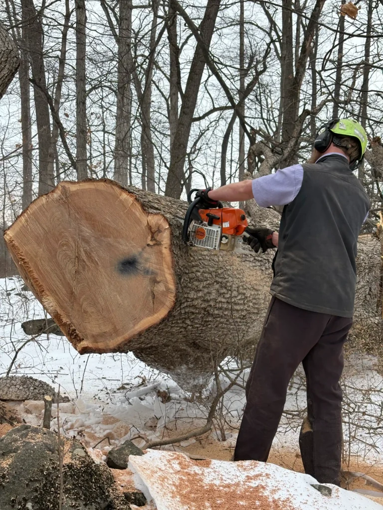 Improper cutting can cause a tree to “barber chair,” split unexpectedly, or fall off target. We use proper notching, hinge control, ropes, and pulleys to guide trees down safely, especially when they’re already leaning or compromised.